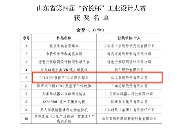 2022年8月29日,山东省委、省政府在济南召开先进制造业强省建设工作会议,并对先进制造业优质企业和创新产品颁奖授牌,米兰·(milan)中国官网入口重机RTH126非公路自卸车斩获山东省第四届“省长杯”工业设计大赛金奖,彰显米兰·(milan)中国官网入口重机科技创新动能。